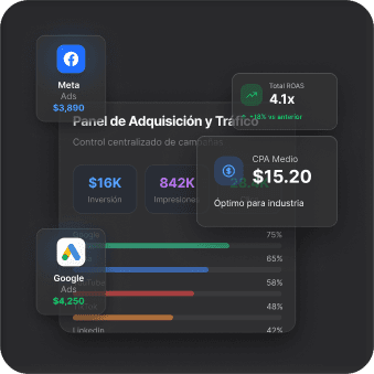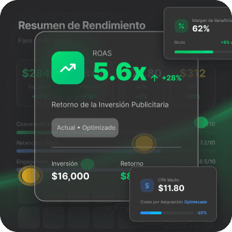 Con rentabilidad demostrada, escalamos. Midiendo los márgenes al milímetro y sin dejar que el ROAS caiga, crecemos en Meta y Google Ads a la vez. Sin prisa, sin sustos, sin sorpresas en la cuenta del banco.